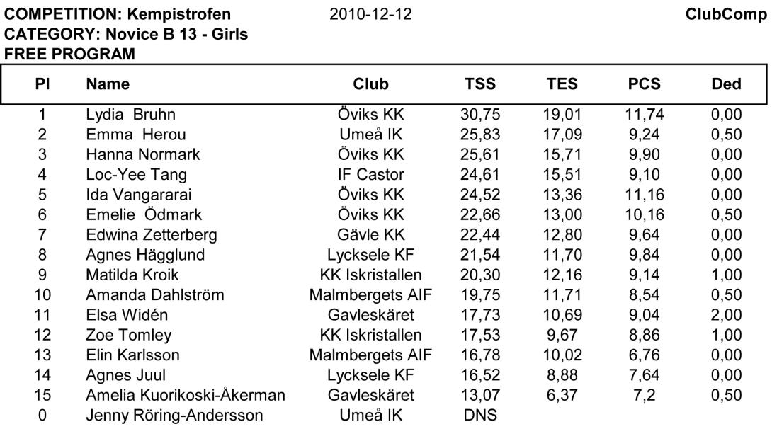 Resultatlista Örnsköldsvik 2010 Dec (